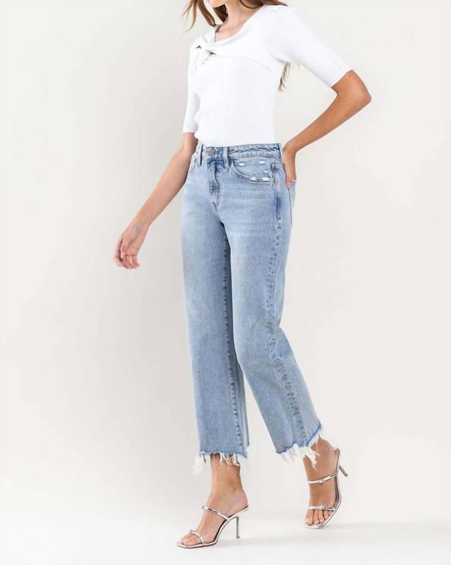 Vervet By Flying Monkey - High Rise Distressed Hem Crop Dad Jeans