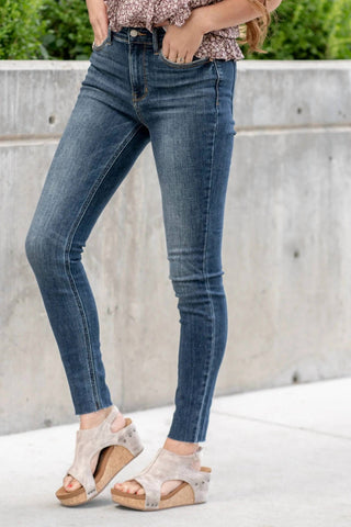 Judy Blue - Women's Mid Rise Vintage Raw Hem Skinny Jeans