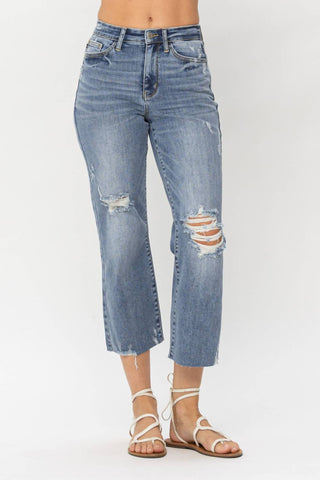 Judy Blue - Dark Cut Off Straight Leg Jeans