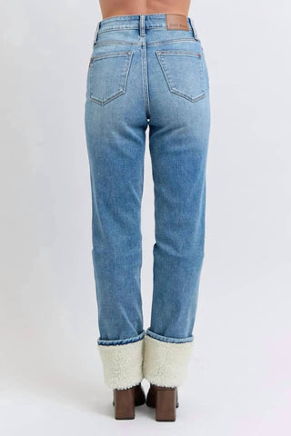 Judy Blue - High Waist Shearling Cuff Straight Denim Jeans