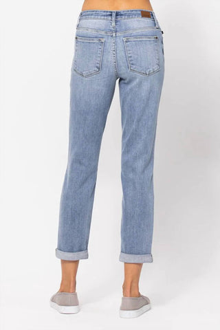 Judy Blue - Mid Rise Chopped Hem Relaxed Denim Jeans