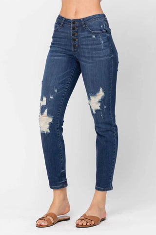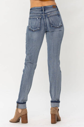Judy Blue - Mid Rise Button Fly & Cuff Options Tall Boyfriend Denim Jeans