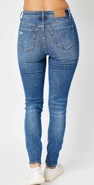Judy Blue - Mid Rise Tummy Control Destroy Skinny Denim Jeans