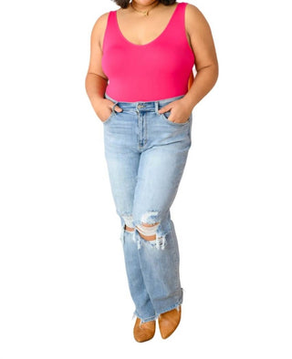 Judy Blue - High Rise Rigid Magic Destroy Slim Straight Jeans
