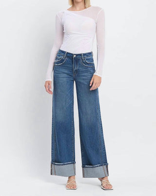 Vervet By Flying Monkey - High Rise Cuffed Panel Baggy Wide Jeans
