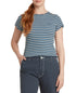 Dickies Women's Stripe Lettuce Edge Rib T-Shirt Blue Size Medium