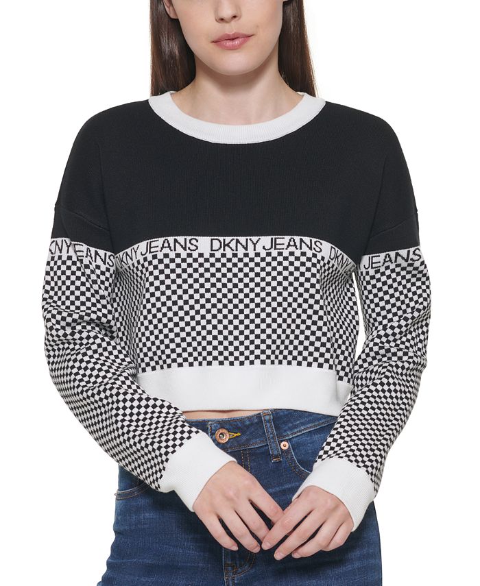 DKNY Women's Checkered Logo Sweater Black Size X-Large