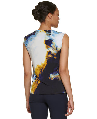 DKNY Women's Printed Zip Shoulder Sleeveless Top Blue Size X-Small