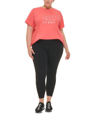 DKNY Women's Cotton Embellished Logo T Shirt Red Size 1X