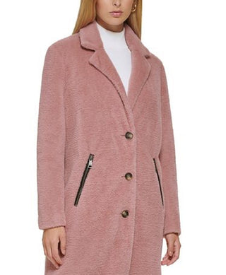 DKNY Women's Teddy Coat Pink Size Petite Small