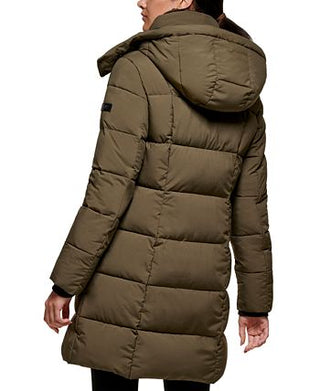 DKNY Women's Hooded Puffer Coat Green Size Small
