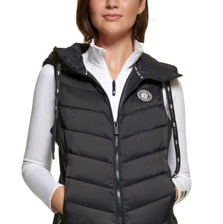 DKNY Women's Hooded Logo Puffer Vest Black Size Medium