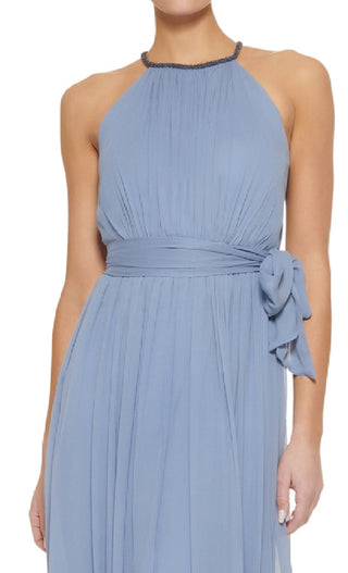 DKNY Women's Embellished Halter Gown Blue Size 4