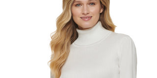 DKNY Women's Ribbed Solid Long Sleeve Turtleneck White Size Large