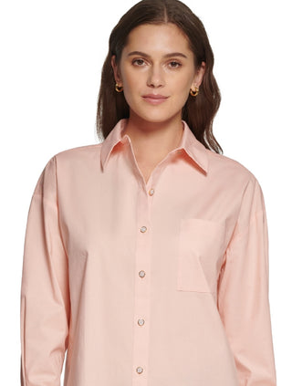 DKNY Women's Oversized Button Up Shirt Orange Size XX-Large