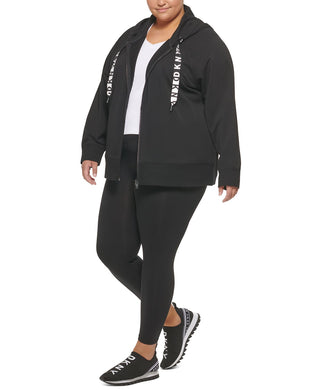 DKNY Women's Sport Plus Logo Drawstring French Terry Hoodie Black Size 3X