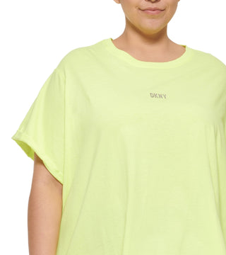 DKNY Women's Sport Plus Knot Front Metallic Logo T-Shirt Yellow Size 1X
