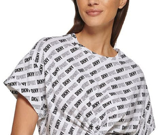DKNY Women's Outline Logo Print Cropped Boxy T-Shirt White Size Small