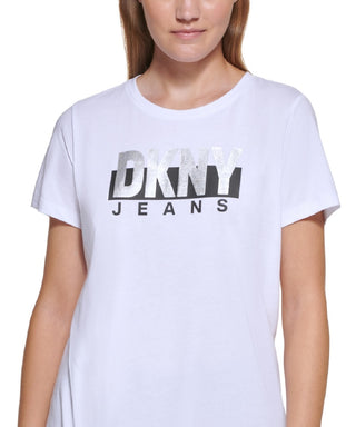 DKNY Women's Metallic Logo T-Shirt White Size XX-Small