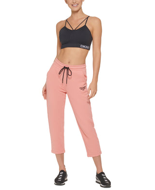 DKNY Women's Cropped Logo Sweatpants Pink Size XL