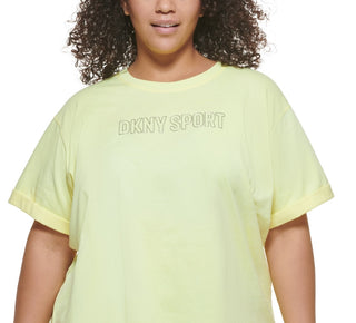 DKNY Women's Cotton Logo T-Shirt Yellow Size 2X