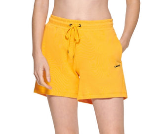 DKNY Women's Cotton Embroidered Logo Shorts Yellow Size X-Large