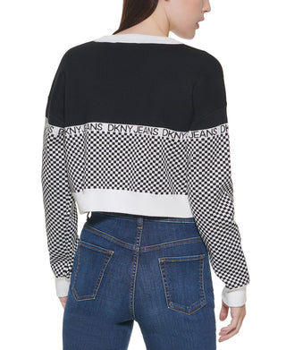 DKNY Women's Checkered Logo Sweater Black Size X-Large