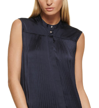 DKNY Women's Pleated Sleeveless Top Blue Size Large