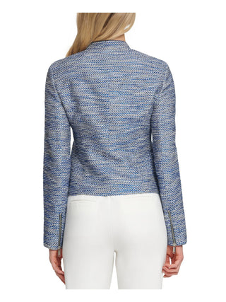 DKNY Women's Zipper Business Tweed Jacket Blue Size 14