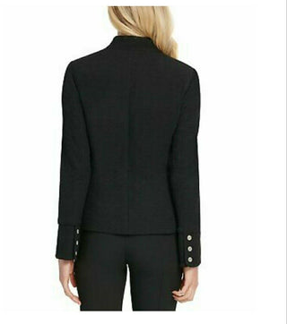 DKNY Women's Stand Collar Double Breasted Military Jacket Black Size 2 Petite