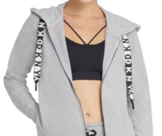 DKNY Women's Logo Fleece Zip Hoodie Gray Size Medium