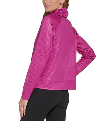 DKNY Women's Honeycomb Mesh Funnel Neck Sweatshirt Pink Size X-Large