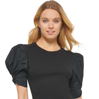 DKNY Women's Crewneck Contrast Puff Sleeve Top Black Size X-Large