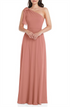 The After Six One-Shoulder Evening Gown in Desert Rose is a stunning piece designed for elegant occasions. This gown features a structured one-shoulder bodice that beautifully frames the figure while the billowy tie detail adds a touch of feminine charm. The flowing floor-length skirt creates a graceful silhouette that moves elegantly with every step. This dress is perfect for formal events, ensuring you stand out with sophistication.