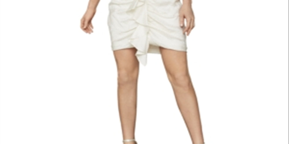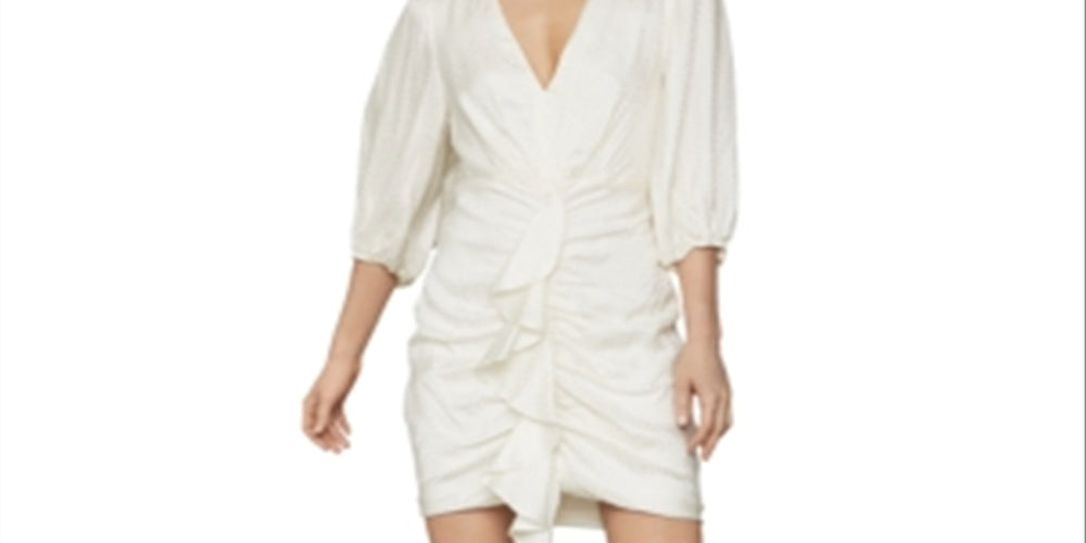 BCBGMAXAZRIA Women's Dotted Satin Ruched Blouson Sleeve V Neck Mini Dress White Size 8