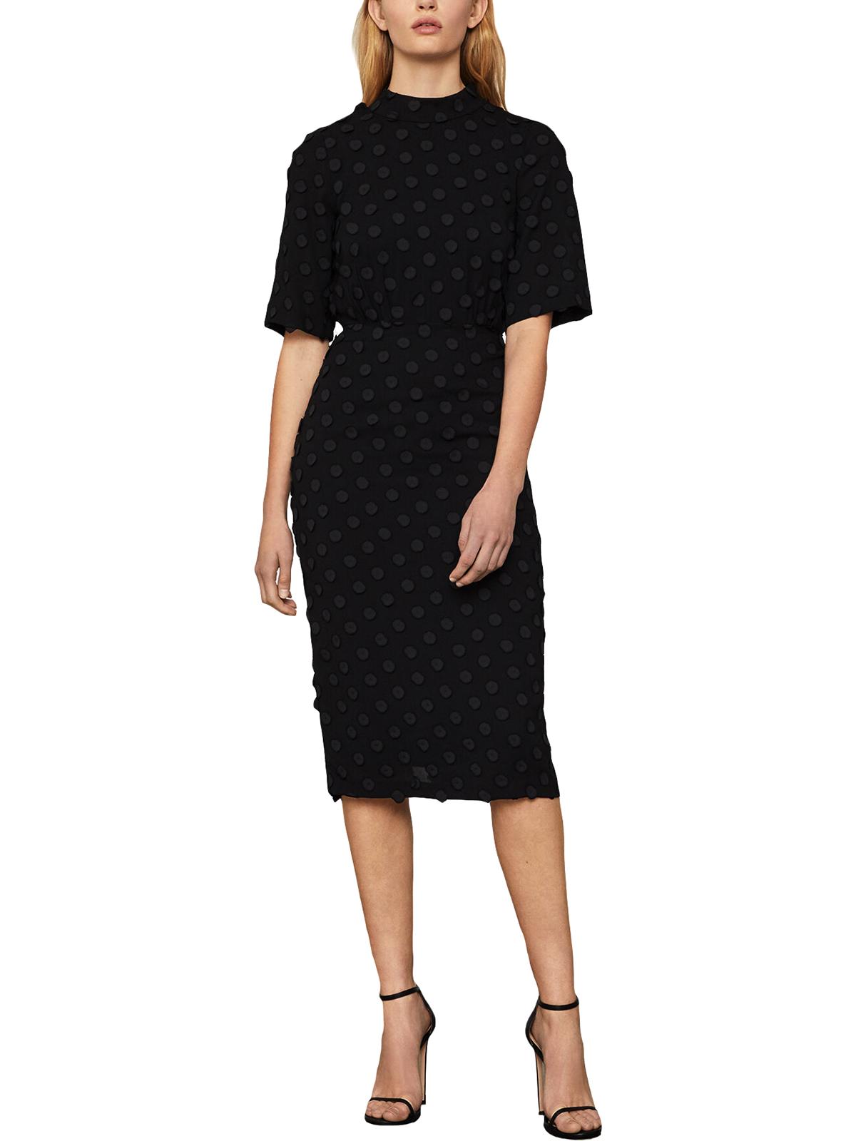 BCBGMAXAZRIA Women's MIDI Dress Mock Neck Sheath Black Size Large