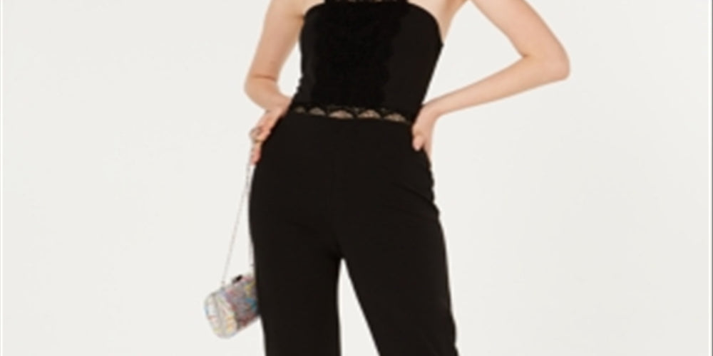 City Studios Women's Lace Solid Sleeveless Halter Skinny Jumpsuit Black Size 1