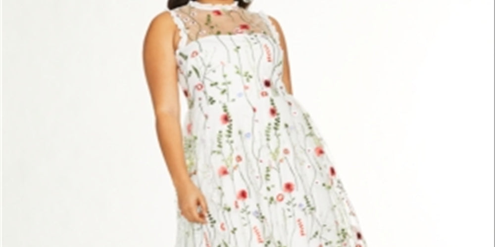 City Studios Women's Trendy Embroidered Floral Gown White Size 14W