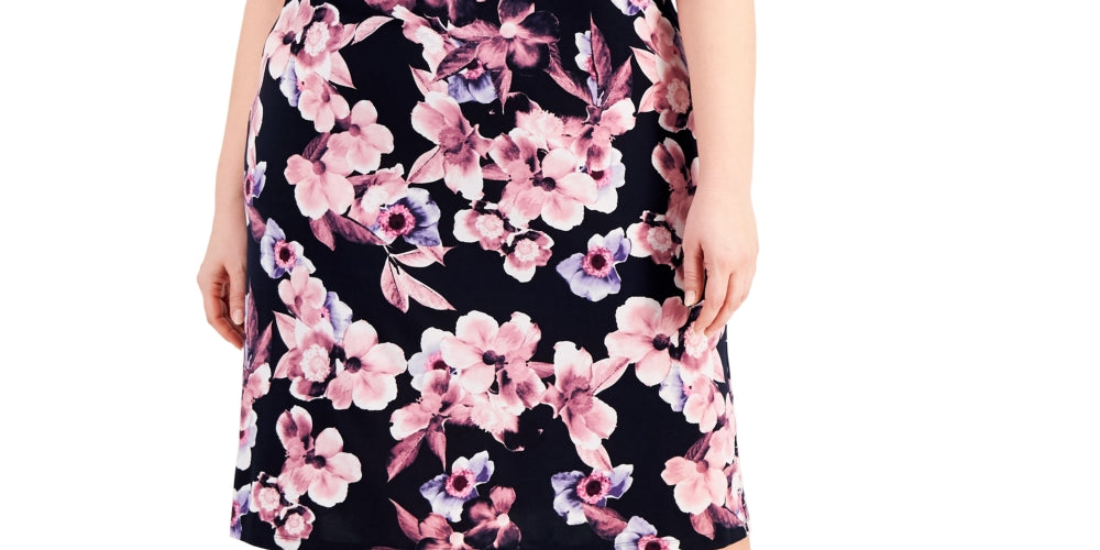 Celebrate in style; Connected's plus size midi dress features an elegant floral print and a popover detail at the bodice.| Approx. 43 long from center back neck to hem. Length is based on size 16W and varies 1/4 between sizes| Falls below the knee to lower calf| Jersey-knit; Soft and stretchy| Round neckline; silhouette| Pullover styling | Popover-style overlay at bodice