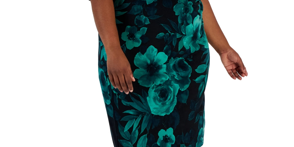 A printed cape lends stylish flair to this plus size dress from Connected| fashioned in a flattering Sheath silhouette and printed with charming florals.| Approx. 40 long from center back neck to hem. Length is based on size 16W and varies 1/4 between sizes| Tailored fit through the chest| waist| and hips; sits close to the body| V-neck; Sheath silhouette