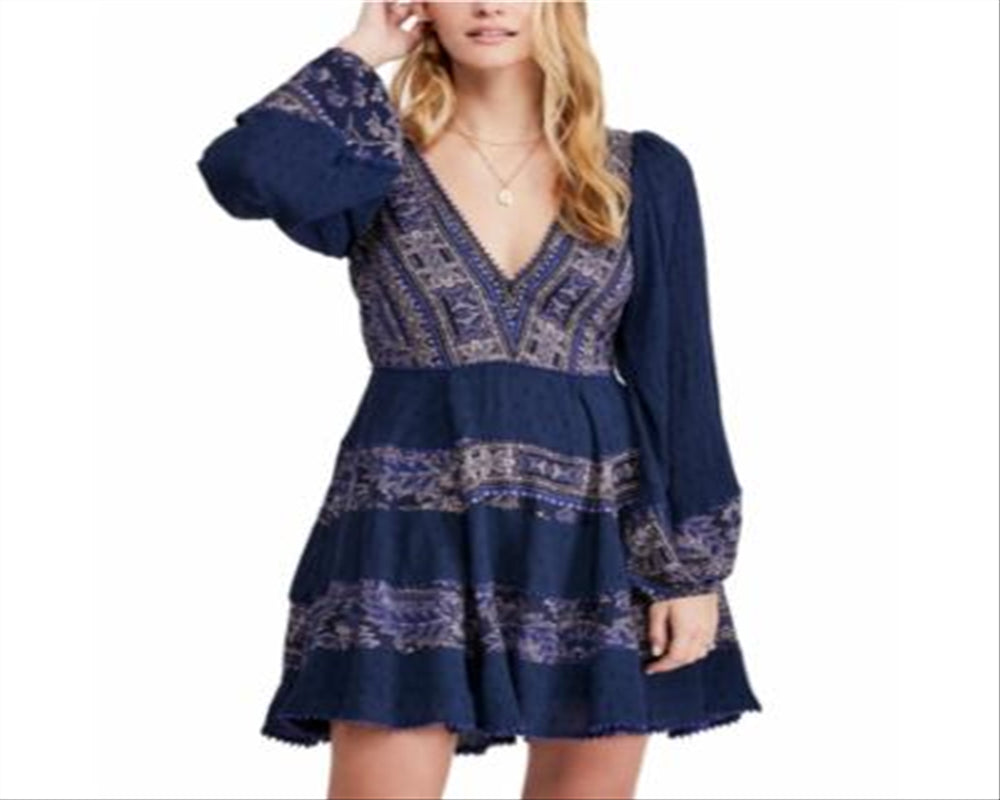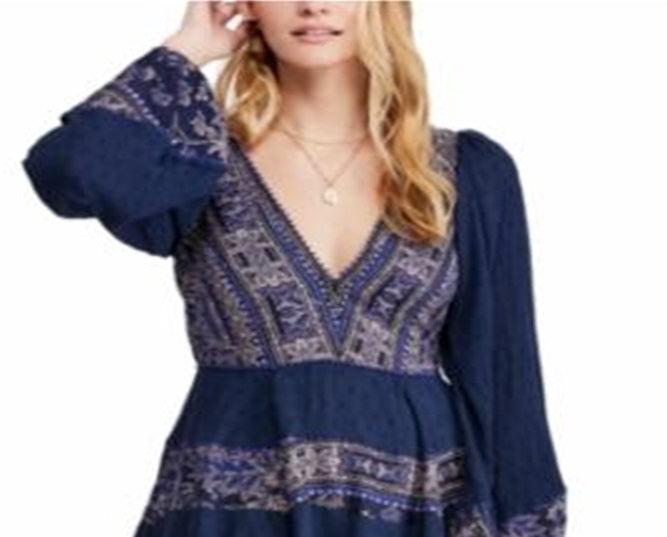 Free People Women's Long Sleeve Above the Knee Dress Blue Size Small
