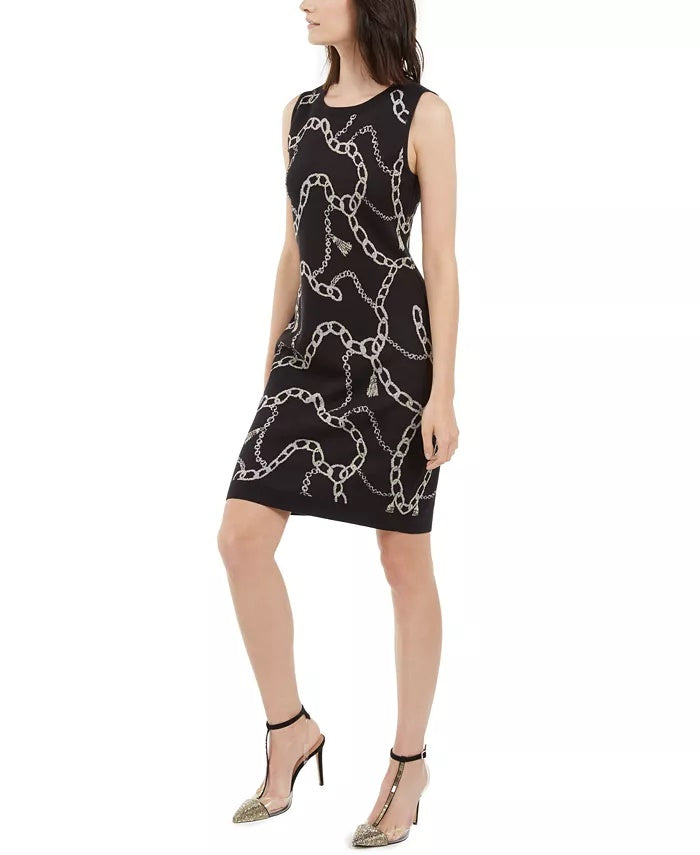 INC International Concepts Women's Chain-Print Sweater Dress Black Size X-Large