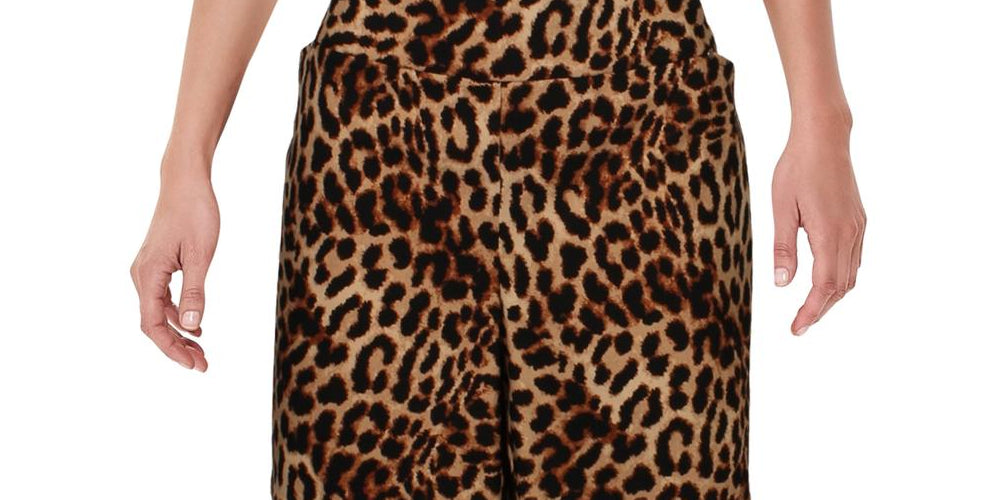 INC International Concepts Women's Plus Animal Print Stretch Dress Shorts Brown Size 20W