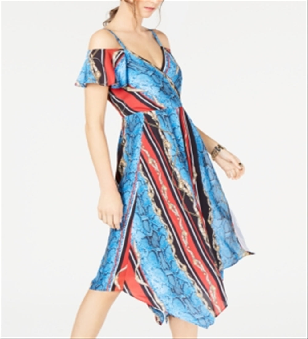 INC International Concepts Women's Printed Cold-Shoulder Dress Blue Size 10 Petite
