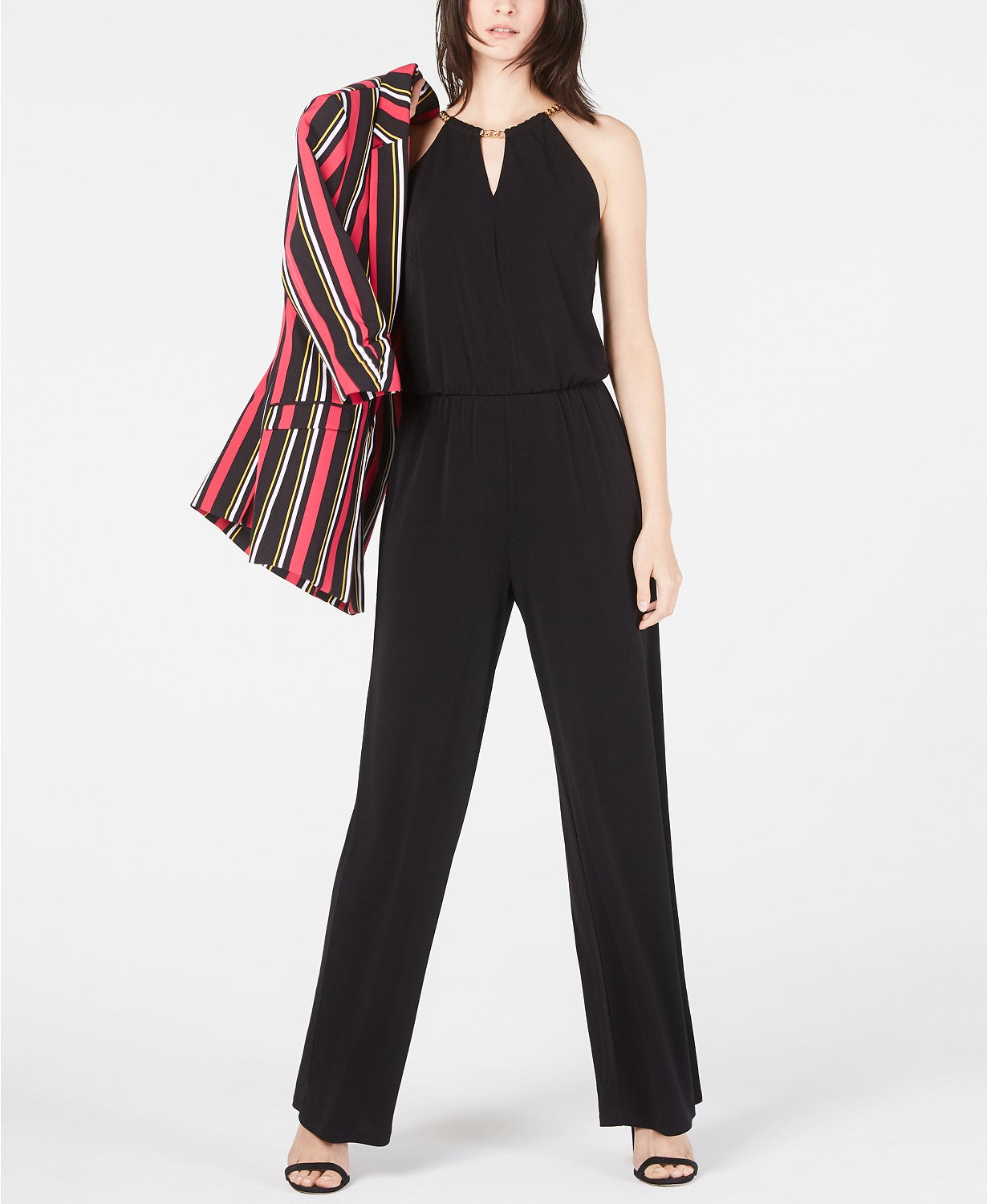 INC International Concepts Women's Solid Chain Jumpsuit Black Size Large