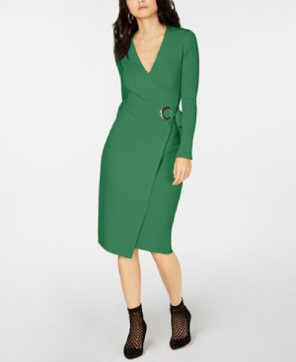INC International Concepts Women's Wrap Sweater Dress Green Size Small