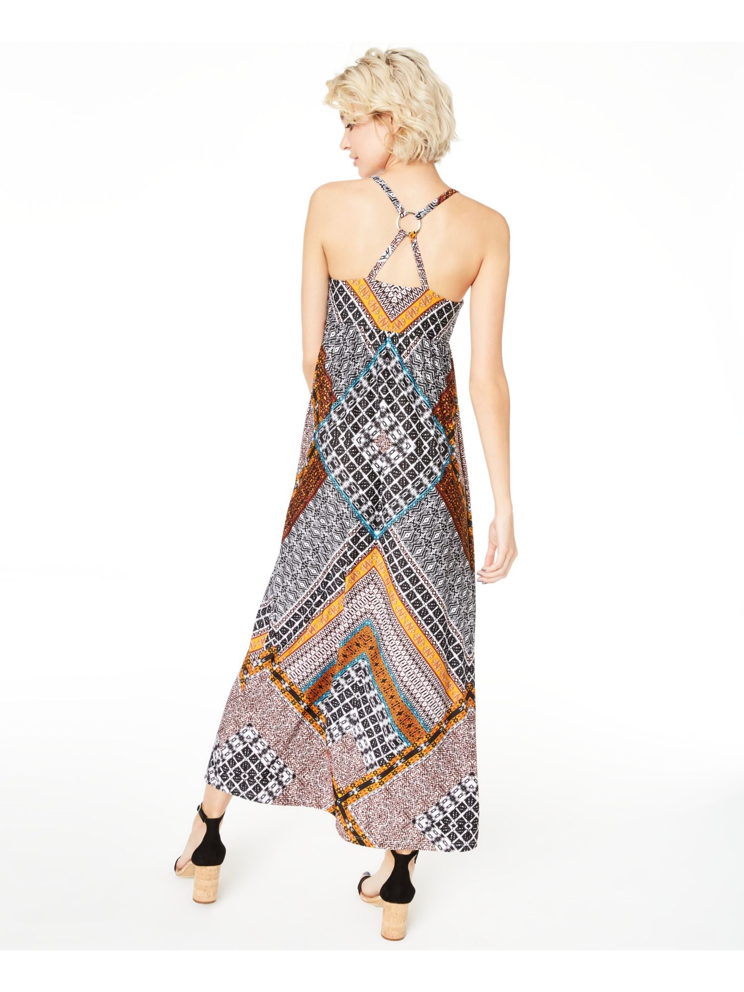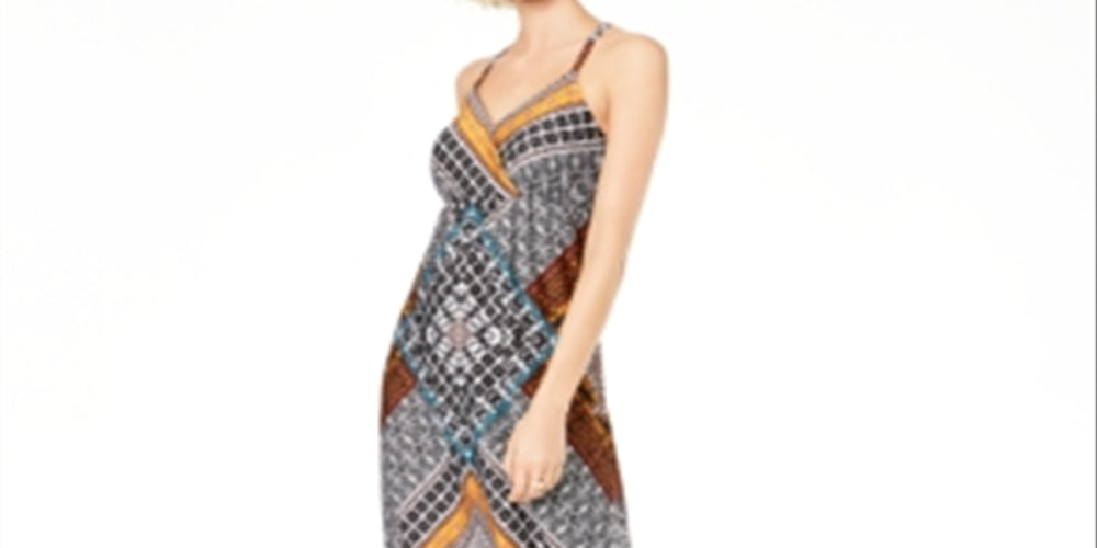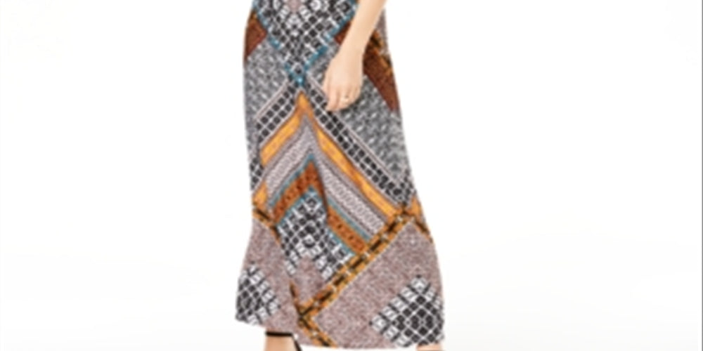 INC Women's Printed Sleeveless V Neck Maxi Sheath Dress Black Size XL