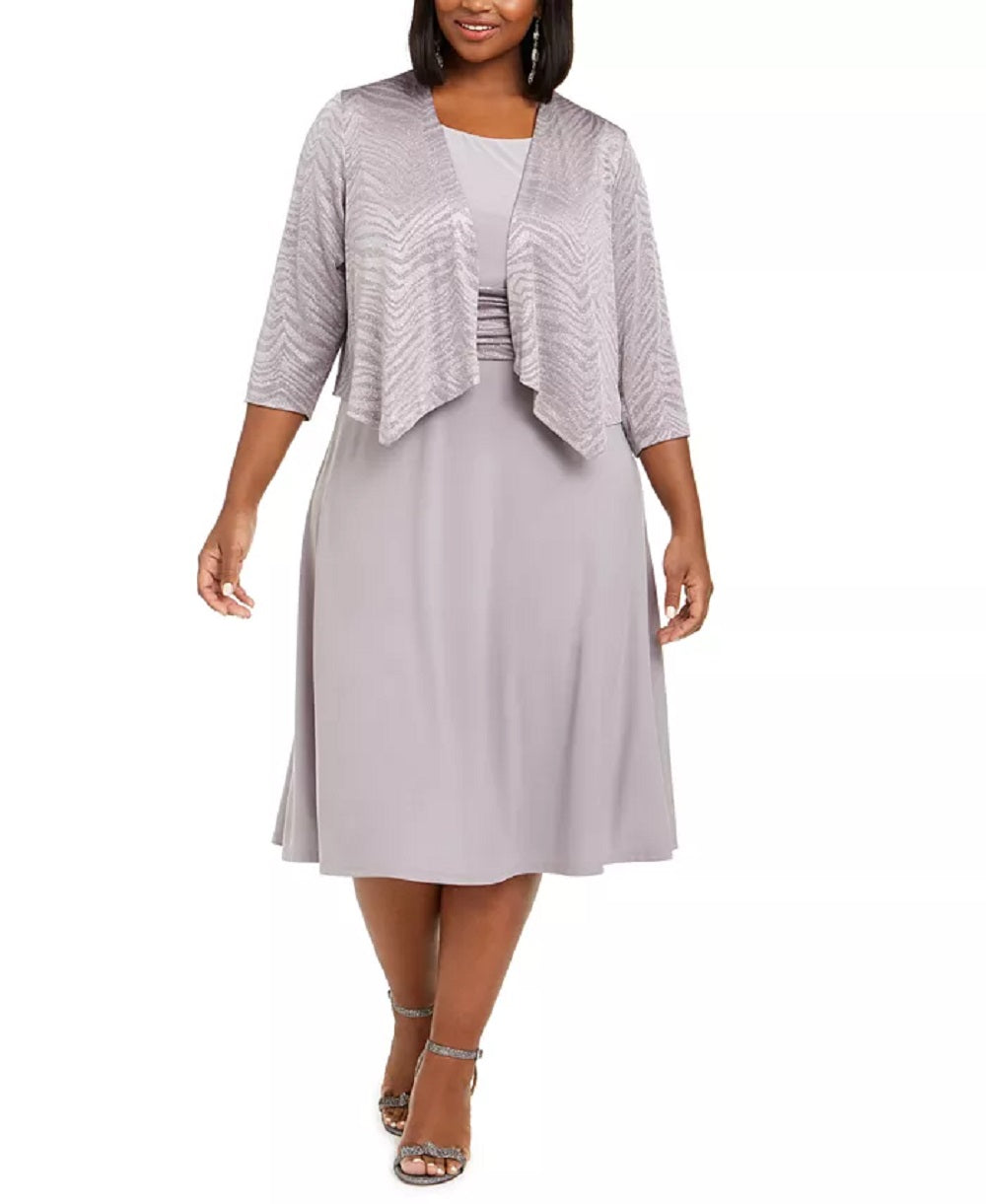 Jessica Howard Women's Midi Dress & Glitter Animal Print Jacket Gray Size 18W