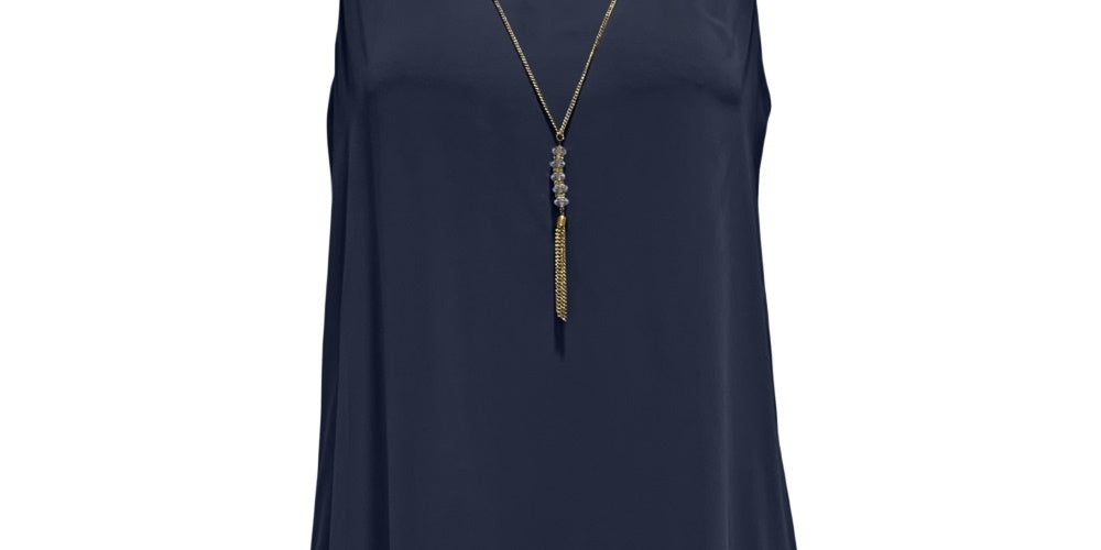 Pullover styling|Metallic necklace detail at front|Scoop neckline|Imported