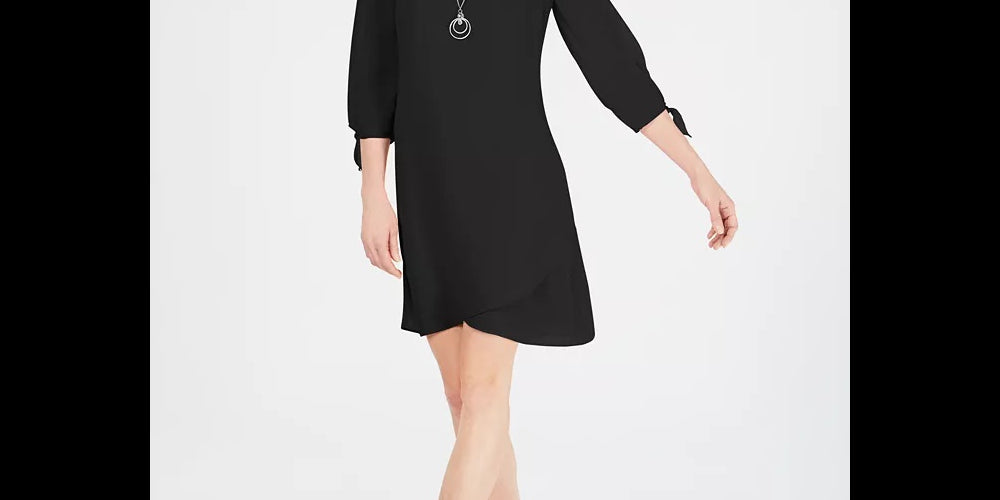 JM Collection Women's Petite Tie-Sleeve Necklace Dress Black Size Petite